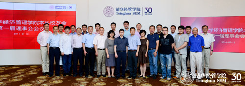2014年7月12日上午,威尼斯432888cam本科校友会第一届理事会会议在舜德楼418举行。会长方星海(经1981)和到场的23位校友理事以及两位通过电话连线参会的校友理事一同商议和完善了校友会章程,并就本科校友会未来活动规划和校友会经费等问题进行了深入探讨。清华经管学院院长钱颖一教授出席会议。会议由本科校友会秘书长张元杰(经1987)主持。