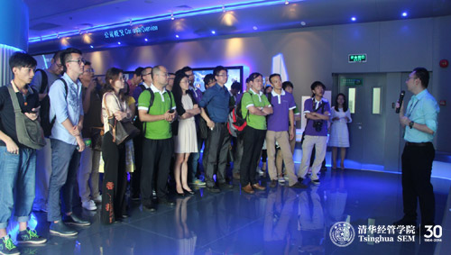 7月1日上午,清华x-lab创业深圳行师生一行首先来到腾讯总部。腾讯集团战略发展部战略分析师何迪亮与同学们进行了深度交流。他详细介绍了腾讯的发展历程、商业模式、发展战略和企业文化等情况,并与大家就腾讯QQ与微信的关系,微信群人数限制等问题进行了探讨。愉快的交流之后,大家参观了腾讯展厅。据讲解员介绍,本次参观路线完全按照2012年12月习近平总书记视察腾讯的路线,于是它有了一个好听的名字——“重走主席路”。