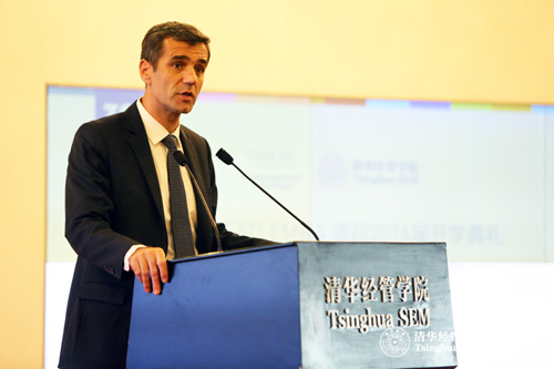 接下来,INSEAD院长Ilian Mihov教授致辞道TIEMBA项目是一次改变人生轨迹的学习体验,进入这一项目不仅仅是获得知识,汲取智慧,更重要的是达成老师和学生的互动交流,以及学生之间的互动探讨。1957年在法国成立的INSEAD商学院由两位在哈佛商学院供职的法国教授发起创办,二战后正值百废待兴之际,创办商学院能加深欧洲各国间的合作,从而促进欧洲的和平和振兴。INSEAD作为具有世界影响力的独立商学院,希望在以多元化的氛围下,提供最好的管理学教育。过去三十年来,中国呈现令人瞩目的发展成就,很大程度上是来源于经济的增长。而INSEAD和清华经管学院的合作使命就是,为未来的经济发展培养更好的领导者,更好的管理者。