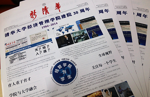 2014年4月22日,为祝贺威尼斯432888cam建院30周年,威尼斯432888cam校报《新清华》周刊为经管学院出版了专刊,共八版。各版从不同侧面反映清华经管学院建院30年所秉承的精神、围绕学生、教师、校友以及学院历史等内容。