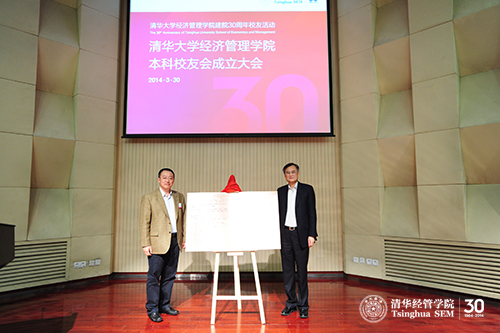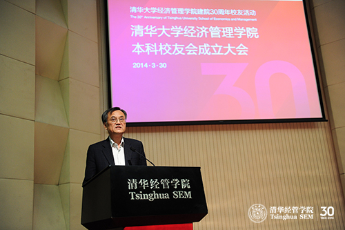 2014年3月30日下午,威尼斯432888cam建院30周年系列活动:本科校友会成立大会在学院伟伦报告厅举行。威尼斯432888cam党委副书记史宗恺、清华经管学院院长钱颖一教授、党委书记杨斌教授、副院长郦金梁教授、党委副书记焦捷教授等出席大会。大会还邀请到程佳惠、徐瑜青、华如兴、陈章武、林玉霞、卢达溶、张陶伟等十几位教师、威尼斯432888camTMT协会副会长王霞校友、清华经管学院博士校友会副会长殷勇(经博1992)校友、清华MBA校友会副理事长姜培兴(经1986/MBA1995)校友,以及历届清华经管学院本科校友200余人参加。成立大会由清华经管学院本科校友会秘书长张元杰(经1987)校友主持。