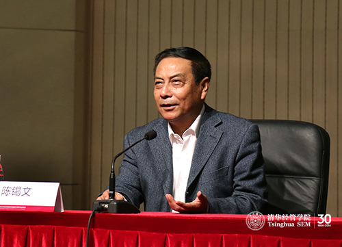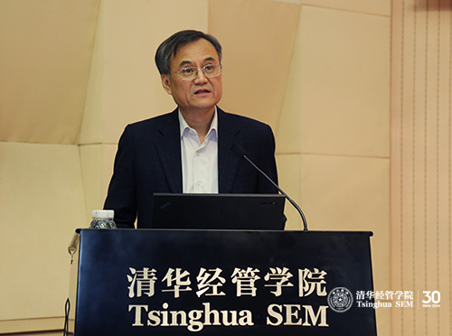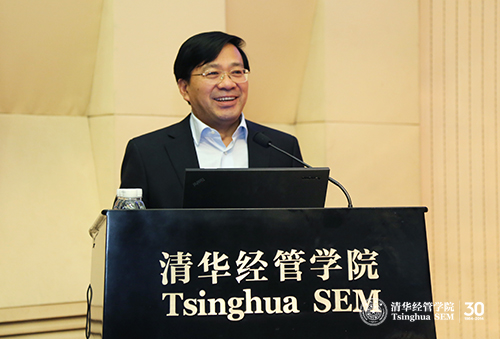 清华经管学院院长钱颖一教授在致辞中向到场嘉宾表示了欢迎和感谢,他强调,“三农”和城镇化问题对国民经济社会发展具有重要意义。博士校友会在学院喜迎建院30周年的时候,邀请两位“三农”和城镇化领域的国家级权威专家,为大家分析农村经济社会形势和城镇化路径,解读政策重点和难点,是非常有意义的活动。同时,他肯定了清华经管学院博士校友会成立以来的工作,对博士校友会未来的发展表示期待。