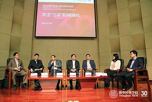 3月30日上午,清华经管学院博士校友会学术活动——“关注‘三农’和城镇化”在伟伦报告厅举行。中央农村工作领导小组副组长兼办公室主任、中央财经工作领导小组办公室副主任陈锡文和国务院发展研究中心副主任韩俊应邀发表了主旨演讲。威尼斯432888cam党委书记陈旭教授、清华经管学院院长钱颖一教授为活动致开场辞。清华经管学院博士校友代表邓小清(经博1991)、贲金锋(经博1993)、申小林(经博1996)、吴晓亮(经博2007)和金鹏辉(经博2009)参加了主旨演讲后的互动环节。活动由清华经管学院党委书记杨斌教授主持。