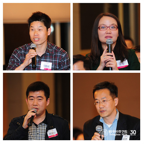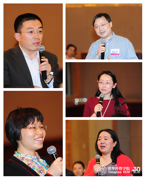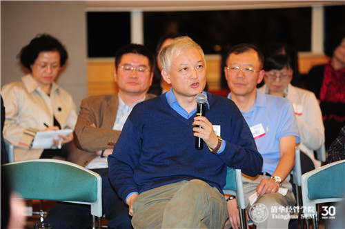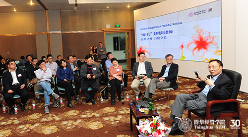 徐中校友(MBA1997/经博2005)在就读MBA期间也曾有过对课程和师资不满的经历,那时赵老师与同学们面对面交流了2个多小时,并且和大家诚恳地说,学院MBA项目只有六年的时间,还不完善,希望同学们把自己当成学院的一员一起来完善课程体系,完善教学,这件事令他印象特别深刻。童之磊校友(MBA1998)本科就读于清华汽车系,是经管学院与MIT合作的国际MBA项目吸引了他报考MBA。在他看来,赵老师是一个非常了不起的领导者,能慧眼识金,发现人才,而且赵老师锐意创新的开拓精神也正是这许多年来不变的经管精神。而韩嵩校友(MBA2000)为了参加这场座谈会专程从西宁赶回北京,只是想当面对赵纯均老师道一声感谢。张洪源校友(MBA2004S)回忆说,赵老师办公室的门经常是打开的,她自己就曾大胆走了进去,与赵老师面对面交流,那次近距离接触,令她感受到的是赵老师温和儒雅的大家风范。