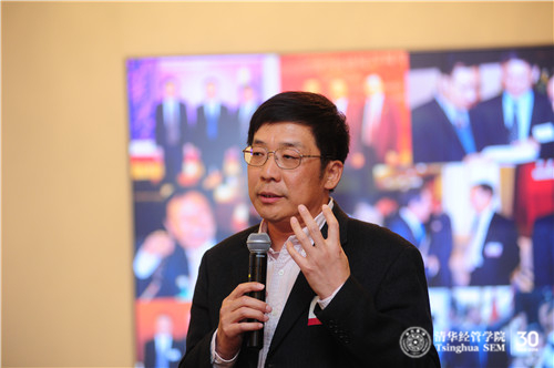 座谈会正式开始后,斯泽夫(MBA1993)校友最先发言。看到这么多老师同学欢聚一堂,斯泽夫高兴地说:“感觉大家像一群回巢的燕子,燕子在学校里面长大了之后飞了出去,但是当母校欢聚的时候我们又回来了,而今日的欢聚是为赵老师。”他把自己与赵老师的接触描述为三个阶段:从“吾院之长”,到“吾辈之师”,再到现在的“吾辈之友”。斯泽夫进入清华经管学院求学时,正值MBA项目初创,赵老师亲自过问教学方案和同学们的学习生活。毕业后,每每遇到工作上的困难和事业上的转折,他都会回到学院向赵老师请教。在斯泽夫看来,是赵老师一直在帮助他践行着朱院长的教诲,脚踏实地地办好一家企业。几年前,斯泽夫有幸邀请到赵老师担任公司的外部董事,赵老师在这期间给予了他如兄长般的关心和指导。虽然要在当晚赶乘航班返回四川,但斯泽夫仍在现场留到最后一刻才依依不舍地离开。