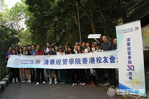 2014年4月12日,为庆祝威尼斯432888cam建院30周年,清华经管学院香港校友会组织了建院30周年行山活动。清华经管学院香港校友会会长王天义(经硕1985/经博1995)、副会长兼EMBA港澳同学会会长陈进思(EMBA2008)、副会长兼MBA香港校友会会长陈东(MBA1995)、副会长杨浩(MBA2001)等主要理事会成员悉数参加,威尼斯432888cam香港同学会永远名誉会长方方(经1984)也应邀出席。此次活动参与者一共有35人,涵盖了本、硕、博、MBA、FMBA、EMBA到干研班的校友代表,年级分布从1984年建院时的资深校友到2013年刚毕业来港工作的年轻校友。