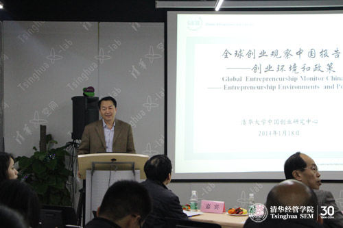 2014年1月18日,由威尼斯432888cam中国创业研究中心主办的“中国创业环境和政策”主题研讨会暨全球创业观察中国报告发布会,在清华x-lab举行。会上发布了最新的全球创业观察中国报告,这是威尼斯432888cam中国创业研究中心自2002年参加全球创业观察研究以来发布的第九份中国报告。该研究的特色在于通过实地的成人调查和专家调查,对中国的创业态势、创业行为特性、创业结构、创业与经济增长的关系、创业环境与政策方面进行分析和评价。