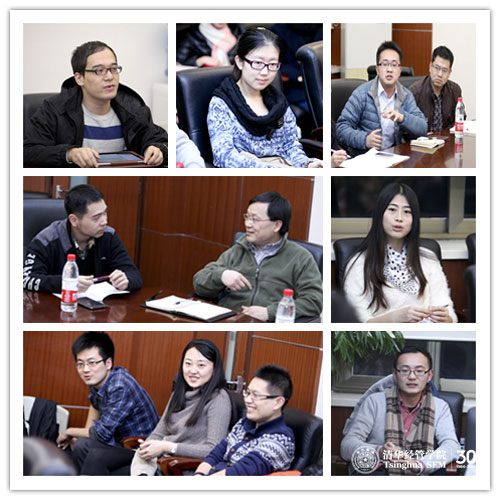金融硕士学生王兆洋、仝晓乐、曹笑阅、王川、邢梦醒、张奔同学对课程设置、理论与实务、行业导师、就业指导等问题提出了建议。刘淳教授说,金融硕士的特点首先是基础扎实,所以我们的专业课会比较深;我们还有许多跟实务联系的机会,比如和五道口金融学院的课程互选;同时,金融硕士现在正在跟MBA谈IPP项目的合作,预计将来可以直接加入到他们的实践项目中;另外,我们会把同学们的反馈纳入将来课程设置的考虑范围中。郦金梁教授表示,设置行业导师的初衷就是为同学们提供学术以外,就业方面的指导。同学们有关于行业、公司等的问题,可以主动联系行业导师咨询,行业导师可能会有一些资源提供给学生。张亦萌老师还说,本学期我们新聘请了多位行业导师,使行业更丰富多样化。
