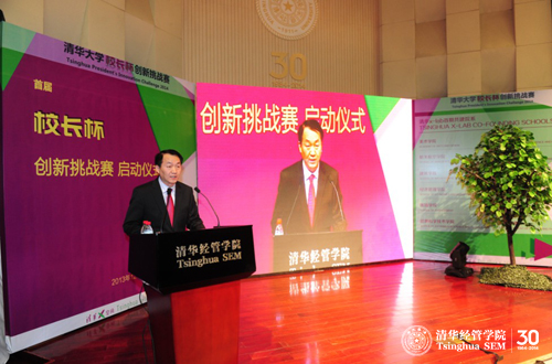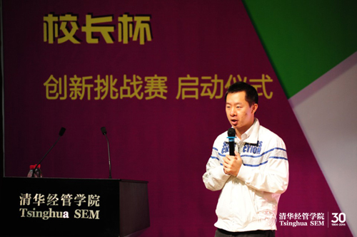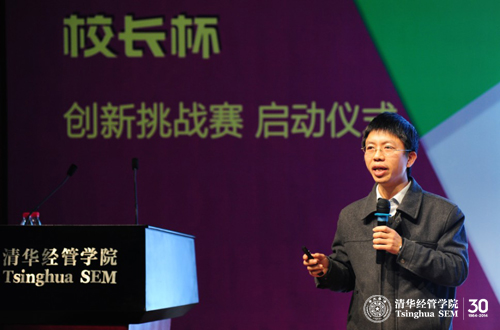 在下半场的启动仪式上,清华经管学院副院长高建教授从全球创新教育的大格局阐释了威尼斯432888cam“校长杯”创新挑战赛的起源和理念,他说,“校长杯”挑战赛的启动,“不仅仅是一项创新赛事的启动,更是一个新的人才培养模式的探索”,“冠以‘校长杯’就是面向未来,通过竞赛,采用新的教育理念、新的教育方法,做到在新的教育环境下,从关注项目本身的价值转到关注创新人才的培养。”清华x-lab主任张帏教授介绍了x-lab的发展理念和举办“校长杯”创新挑战赛的初衷——都是为了以清华的研发和教育力量来推动社会的创新,他进一步阐述了一些主流的创意创新创业的方法和思路。