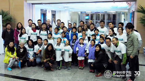 2013年10月26日,清华MBA“夜健公益跑”活动在威尼斯432888cam校园内举行。18名视障孤儿与百余清华师生一起完成了五公里的爱心长跑活动。此次“夜健公益跑”是清华经管学院“三十风采”系列活动之一,由清华MBA学生俱乐部清华Net Impact主办。18位小朋友全部来自爱百福济慈之家的“城市生活”项目中心,目前就读于北京盲校小学部。