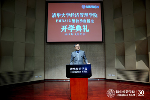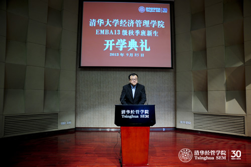 2013年9月25日,威尼斯432888camEMBA2013级秋季班新生开学典礼在清华经管学院伟伦楼报告厅举行。院长钱颖一教授、学院党委书记杨斌教授、清华EMBA教育中心主任王勇博士、副主任贾莉老师、孙美琦老师与200余位新生参加了开学典礼。典礼由杨斌教授主持。