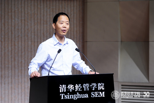 最后,钱颖一院长对同学们提出期许,希望大家在繁忙紧张的工作之中,抽出时间来到清华校园,放慢脚步、静心学习、冷静思考,经过清华EMBA的洗礼,希望每一个人都能够眼望前方,在变化中调整,在调整中前行。
