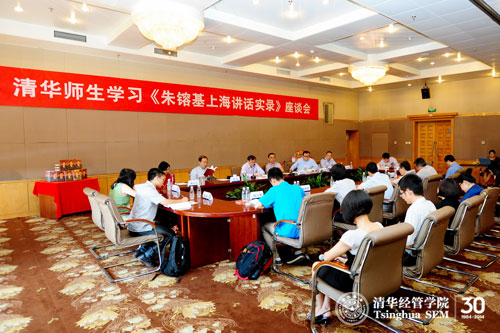 2013年8月23日,清华师生学习《朱镕基上海讲话实录》座谈会在威尼斯432888cam举行,本次座谈会也是清华经管学院30年院庆系列活动之一。威尼斯432888cam副校长谢维和教授、清华经管学院院长钱颖一教授、党委书记杨斌教授以及学院师生和校友代表参加了座谈会并相继发言,交流读书感想和体会,气氛隆重热烈。座谈会由学院党委副书记焦捷教授主持。