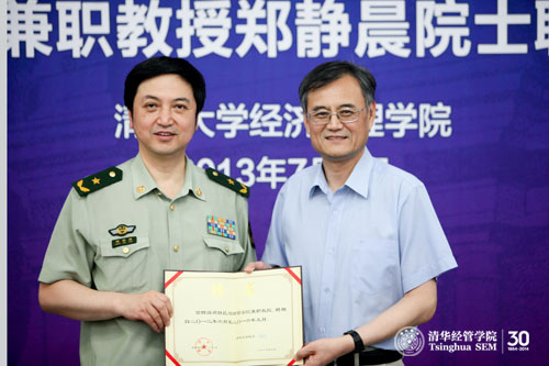 2013年7月9日下午,清华经管学院举行授聘仪式,正式聘任清华EMBA校友、武警后勤部副部长、武警总医院院长郑静晨院士为威尼斯432888cam兼职教授。经管学院院长钱颖一、党委书记杨斌、党委副书记朱岩等出席了仪式,活动由杨斌教授主持。
