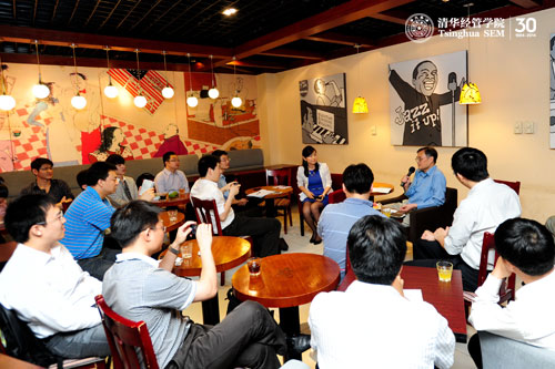 2013年6月8日晚,清华MBA“匹萨之夜”活动在舜德楼咖啡厅举行。本次活动聚集了2010、2011、2012级的数十名MBA同学,大家与钱颖一院长面对面近距离交流,反馈学习、生活中遇到的问题,畅谈人生规划与职业发展。。