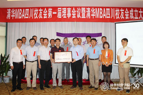 6月15日上午,清华MBA四川校友会第一届理事会议暨成立大会在成都市向阳大厦召开,中国第二重型机械集团公司党委常委、副总经理李瑞潮(MBA1992)当选为首任会长,干研班一期沈国俊学长和清华经管学院四川校友会会长、MBA校友会副理事长斯泽夫(MBA1993)受聘为名誉会长。清华经管学院副院长郦金梁,MBA校友会常务副理事长龙大伟(MBA1993)致辞并授牌。清华MBA校友理事刘自强(MBA1999)主持了仪式。这是清华MBA校友会正式成立的第15个分支机构、第10个地区分会。