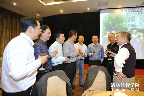 2013年4月27日晚,清华经管学院值年校友晚宴于文津国际酒店举行。入学三十周年的经1983级,毕业二十周年的经1988级,入学二十周年的经1993、经硕1993、MBA1993级等各年级共150余位校友参加了晚宴。清华经管学院院长钱颖一教授、党委书记杨斌教授、副院长白重恩教授、副院长高建教授、副院长郦金梁教授、党委副书记焦捷教授,与李端敏、罗绍彦、吴峨、侯炳辉、赵纯均、程佳惠、徐瑜青、陈章武、李子奈、杨铎等离退休教师,蓝伯雄、姜旭平、薛镭、张陶伟、黄京华、宋学宝、曲庆、谢德仁、赵冬青、段志蓉、闻中等在职教师,工业工程系卢达溶教授,教学办邢立君、裴宇红、MBA教育中心于红蕾、吴英纳等职员一起出席了晚宴。刘宏飞(经1980/经硕1985),韩亦舜(经硕1982),董桂芹(高盛-清华“巾帼园梦”项目)作为特邀校友出席。