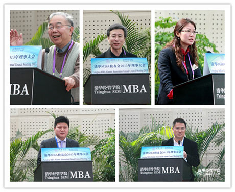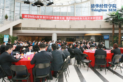 2013年3月23日上午,清华MBA校友会在威尼斯432888cam主楼接待厅召开2013年理事大会。会议通过中期增选理事27名,常务理事17名,副理事长8名,审议通过了校友会2012年工作报告和2013年工作计划并颁发了集体贡献奖和特殊贡献奖。清华经管学院副院长郦金梁教授出席了上午的会议并致辞,清华MBA校友会常务副理事长龙大伟(MBA1993)在大会上做出专题报告,副理事长兼秘书长姜培兴(MBA1995)主持会议。来自香港、深圳、上海、成都、北京等16个地市的64名MBA校友理事以及校友嘉宾、MBA师生共84名出席了本次理事大会。