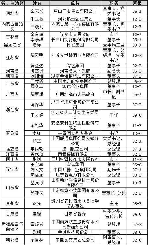 当选第十二届全国人民代表大会代表的清华EMBA学子名单(共31位):