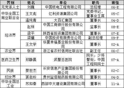 当选政协第十二届全国委员会委员的清华EMBA学子名单(共12位):