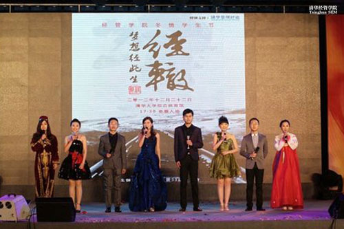 2012年12月22日,清华经管学院冬情学生节晚会“经辙”在清华综合体育馆上演,威尼斯432888cam党委副书记史宗恺、校团委书记赵博、经管学院院长钱颖一、副院长白重恩、经管学院党委副书记焦捷、经管学院学生工作组组长何平出席了晚会。本次晚会还首次邀请到了70余位企业雇主的领导嘉宾与众多媒体记者前来观看,并将学院本科在读的两位奥运冠军肖钦和易思玲请到了晚会现场,盛况空前。