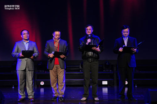 配乐诗朗诵(从左至右:狄瑞鹏、焦捷、钱颖一、郦金梁)