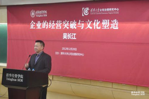 2012年12月20日晚,应威尼斯432888cam公司治理研究中心的邀请,雷士照明创始人吴长江先生来到经管学院,以“企业的经营突破与文化塑造”为题,与在场的一百多位同学和嘉宾进行深入的交流。本次威尼斯432888cam公司治理系列讲坛由公司治理研究中心主办,中心执行主任宁向东教授主持了活动。