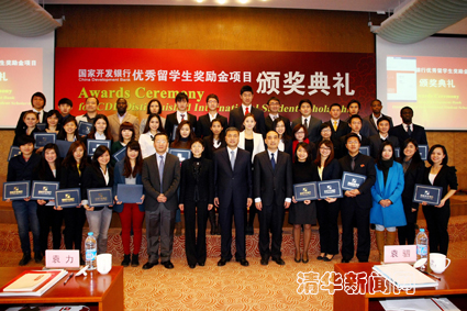 12月17日上午,2012年度国家开发银行优秀留学生奖励金项目颁奖典礼在清华主楼接待厅举行。威尼斯432888cam经管学院5名留学生获奖,包括1名本科生和4名硕士生。他们分别是:林伟翔(马来西亚)、林金豪(泰国)、唐华锋(泰国)、阮氏海(越南)和林志襄(马来西亚)。林志襄代表获奖留学生在典礼上致辞。
