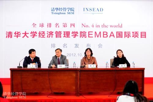 10月16日,清华经管学院就清华EMBA国际项目排名全球第四、中国内地第一召开了新闻发布会,院长钱颖一、EMBA教育中心执行主任王勇、学术主任陈荣、国际项目执行主任张磊出席了发布会。