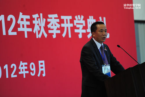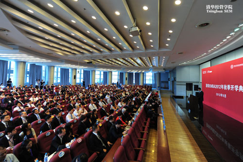 9月19日下午,清华EMBA2012年秋季开学典礼在威尼斯432888cam主楼后厅举行。典礼首次由清华经管学院与清华五道口金融学院共同举办,来自2012级清华经管学院EMBA、第八期清华—花旗EMBA媒体班、以及首届五道口金融EMBA的400多位同学参加了开学典礼。威尼斯432888cam院长钱颖一、院长助理狄瑞鹏,威尼斯432888cam五道口金融学院常务副院长廖理、党委副书记赵岑等参加了典礼。