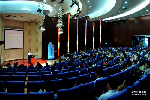随后,管理科学与工程专业硕士项目新生何玉梅、金融专业硕士项目新生邹基伟、管理硕士(MiM)项目新生程楷、企业战略管理博士项目新生王砚羽四位同学代表2012级研究生新生发言。本科毕业于北京邮电大学的何玉梅、硕士毕业于南京航空航天大学的王砚羽,表达了自己能进入清华经管学院进行学习的喜悦心情,期望将来在老师们的帮助下,在研究中获得更大的进步。本科毕业于经管学院的邹基伟从感动清华人的点滴细节出发,以“珍惜”和“担当”与在场新生共勉。同样本科毕业于经管学院的程楷,则表示能够继续留在学院学习是一种幸运,“在心怀感激的同时,……更需要认识到自己肩上的责任与使命,倍加珍惜在经管求学的机会”。