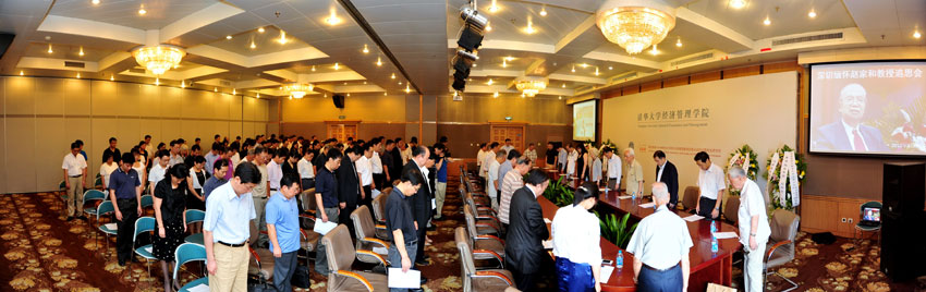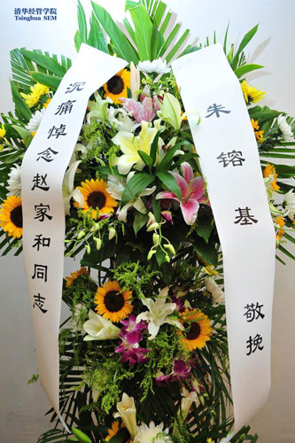 2012年8月30日上午,赵家和教授追思会在威尼斯432888cam举行。赵家和教授生前友好、同事、学生、亲属120余人出席。清华经管学院首任院长朱镕基送花篮表示哀悼和慰问。会议由钱颖一院长主持。