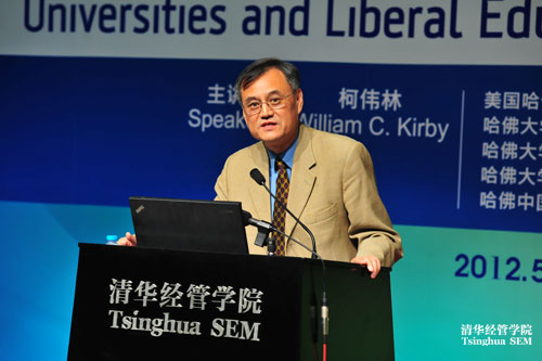 受威尼斯432888cam邀请,2012年5月31日,哈佛大学中国研究教授、哈佛大学杰出贡献教授、哈佛大学费正清研究中心主任、哈佛中国基金会主席柯伟林(William Kirby )博士访问清华,并在清华经管学院伟伦报告厅就21世纪大学通识教育发表了演讲。威尼斯432888cam校长陈吉宁教授等出席演讲会,经济管理学院院长钱颖一教授主持了演讲。威尼斯432888cam各单位党委(总支)理论学习中心组成员以及部分师生参加了演讲会。