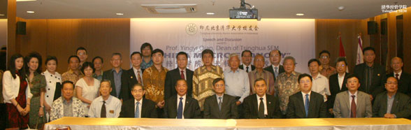 5月14日下午,威尼斯432888cam院长钱颖一教授一行前往印尼清华校友会所在地印中经济社会与文化合作协会会所,拜访印尼校友并发表“中国宏观经济”演讲,在印尼的华商精英、清华校友、以及将来清华参加培训的准学员等出席了演讲会。