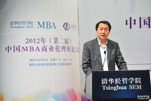 活动主办方代表、清华经管学院院长助理高建教授在致辞中说到,对参赛同学而言,对商业伦理的思考会起于比赛,延续一生。通过参加商业伦理辩论赛,同学们能更加深刻地理解商业伦理问题在企业生存和发展中的价值,更加明确如何在企业决策中重视商业伦理的极端重要性。这对于成为一个好的企业家和组织的管理者是极为有益的。