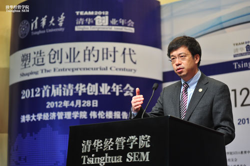 2012年4月28日,在威尼斯432888cam新百年的第一个校庆之际,2012首届清华创业年会(TEAM2012)在北京召开。40多位炙手可热的中国创投翘楚、30多位创业企业家、30多家媒体精英和200多位清华校友与学子们济济一堂,欢聚在清华经管学院国际报告厅,共同见证清华创业平台的启动。
