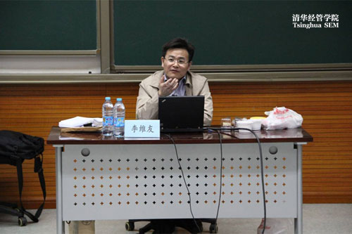 2012年4月5日,证监会会计部监管处李维友博士应邀出席清华会计高端论坛,做了题为“上市公司会计及信息披露相关问题”的演讲。会计专业硕士项目主任罗玫教授主持了本次论坛。