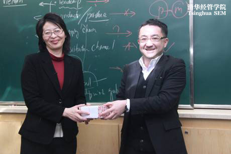 为了做好本次来访的接待工作,MBA教育中心做了充分的准备工作。在帮助早稻田师生联系参访企业的同时,还邀请到深受清华MBA学生欢迎的陈涛涛教授给早稻田大学的同学们上了一堂精彩的案例分析课程。早稻田的同学们仔细聆听,认真记录,热烈讨论。案例讨论结束后,早稻田大学带队教师樋原伸彦教授向陈涛涛教授表达了诚挚的谢意,并赠送礼物。