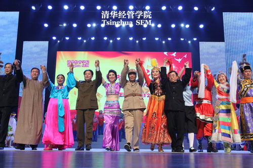 本次晚会由清华EMBA教育中心主办,老师、同学、校友们经过近3个多月的筹备,不辞辛苦、不遗余力。特别是得到了清华腰鼓队、北京军区政治部战友文工团、EMBA10-A、C、D、E、F班和11-A、B、C、D、E班及04-A班霍起、04-E班张红梅、10-B班郭绍增、11-F林拥军等对晚会组织筹备和设备及服务的大力支持,有了他们的付出,才使得整个视听盛宴完美呈现。(供稿 EMBA 编辑 沟通办)