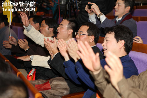 钱颖一院长在致辞中简要回顾了清华经管学院和EMBA2011年的工作。他说,2011年,正值清华百年校庆。学院借这个机会,认真总结和反思学院的办学经历,力图把办学水平提升一个层次。我们修订了学院使命,新的使命的十六个字--“创造知识,培育领袖,贡献中国,影响世界”更加简洁、明确、响亮。学院也为每一类教学项目疏理明确了培养理念和定位,包括本科、硕士、博士、MBA、EMBA和高级管理培训。而清华EMBA项目,无论是官方评比,还是媒体排名,始终保持在全国名列前茅。在《经理人》杂志推出的中国最佳EMBA榜单上,清华EMBA更是连续六年第三次蝉联桂冠。钱院长最后说,往日的荣耀,今天的责任,未来的期待,清华人信心满怀。有了无比深厚的人文底蕴和管理积淀,有了百年发展的品牌和实力,我们一定会在新百年的新起点上,在老师、同学、校友和社会各界的共同努力下,全力把清华经管学院建设成为中国第一、世界领先的经济管理学院,把清华EMBA办成中国和世界顶尖的EMBA。