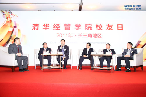 接下来,话题转向“战略性新兴产业的发展”,上海盘谷房地产有限公司总经理宋海(经1980),国务院国资委信息中心副主任、总经济师张铭(经硕1985),杭州中能汽轮机动力有限公司总经理李锡明(热能1985),浙江省科技厅党组书记、厅长蒋泰维(经博2005),及谷歌中国区总裁刘允(清华-中欧-哈佛高级经理人课程)分别发表了各自的见解。