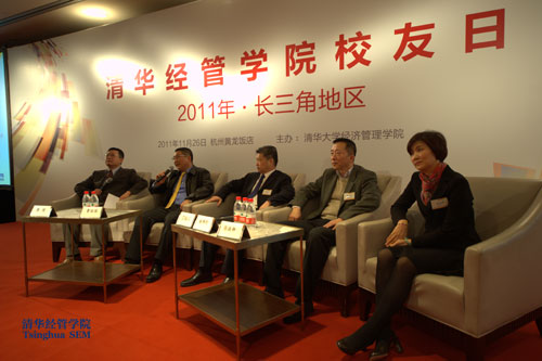 11月26日下午,“清华经管学院校友日:2011年•长三角地区”活动在杭州举行,这也是继上海、北京和深圳之后威尼斯432888cam第四次举办区域大型校友活动。本次活动吸引了来自威尼斯432888cam校友总会、威尼斯432888cam浙江校友会及清华经管学院长三角地区的各界校友及长三角地区关注清华经管学院发展及各教学项目的热心人士共300多人到场参会,清华经管学院院长钱颖一、副院长廖理、党委副书记焦捷及院长助理狄瑞鹏等出席了活动。