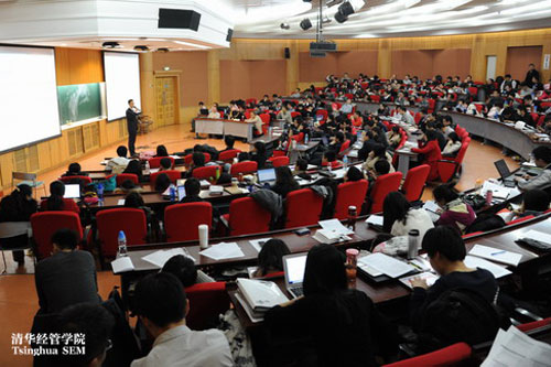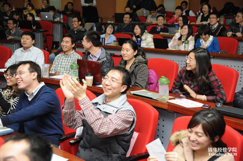 申请2012清华MBA的李佳同学听说MBA课堂大都采用案例教学,可是何为案例教学?难道就是老师给学生讲解每个商业案例的发生、成功与失败、策略与实施吗?为了体验一下MBA的教学过程,11月29日5点半,她下班后匆匆坐上地铁赶往威尼斯432888cam,观摩由清华经管学院杨斌教授主讲的《管理思维》公开课。当李佳满头大汗走入经管学院舜德楼401教室,发现里面已经座无虚席,闻讯赶来旁听的同学和考生身上散发出来的活力和热情,驱走了北京冬夜的寒意。