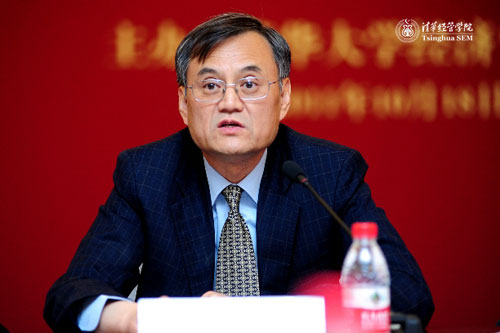 随后,上海市金融服务办公室主任方星海(经1981)、金石投资有限公司董事总经理杨宏儒(经1981/经硕1986/经博1989)、清华经管学院市场营销系主任赵平教授(经博1987)、诺德基金管理有限公司总经理潘福祥(经1983/经硕1988)、北京科鼎隆科技发展有限公司总经理刘俊林(EMBA2005)、泰达国际控股(集团)有限公司党委副书记、总经理金荦(经1987/经博1998)、中国电子信息产业集团有限公司外部董事张晓铁(经硕1987)、中国建设银行金融市场部副总经理王勇(经1987/经硕1992)、中文在线总经理童之磊(MBA1998)、搜房控股有限公司董事长莫天全(经硕1986)、对外经济贸易大学金融学院宋国良教授(经硕1991)、北京国通创安报警网络技术有限公司董事副总经理何江(EMBA2008)、中国中纺集团公司人事行政部副总经理刘硕(EMBA2011)、瑞银证券有限责任公司品牌管理董事刘旭(经硕1995)、山东电力工程咨询院院长盖其庆(EMBA2005)等经管学院校友代表相继在座谈会上发言。大家表示,《朱镕基讲话实录》内容丰富,语言生动,文风朴实,充分体现了朱院长讲真话,办实事的风格,全面展示了他直面问题的勇者作风、抓住主要矛盾解决复杂问题的高超艺术,真实刻画了有血有肉的总理形象。校友们无论是就读期间直接聆听过老院长的教诲,还是慕老院长之名来到经管学院学习,对朱镕基老院长的感情都极为深厚,充满了崇敬之情。