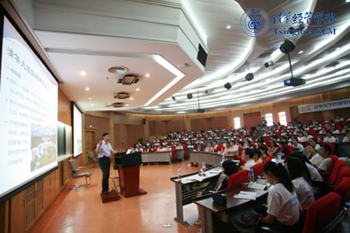 在夏令营期间,金融系郦金梁教授举办了讲座,为同学们展示了近年来中国经济实现的成就以及面临的挑战并与同学们讨论了金融专业大学生的历史使命和社会责任,引发了同学们深思。金融系杨之曙教授举办讲座,图文并茂地阐述了其近期关于“投资者的行为对资产价值的影响”的研究;他巧妙的实验设计和审慎的数据处理向同学们展现了学术研究的魅力。金融系陈秉正教授举办的讲座全面阐述了国内外保险业的发展现状,预测了行业的发展趋势。他总结了清华经管学院保险专业在教学与研究方面的独特优势,引发了许多同学对保险专业的强烈兴趣。黄张凯、何平、杨之曙和郦金梁等教授特别与金融学博士项目申请人座谈,和同学们讨论了金融学博士的培养模式和职业发展前景。这种面对面的深度交流对于博士项目申请者显得尤其珍贵:一方面参与座谈的教师引导他们及早判断自己是否适合学术导向型的博士项目,另一方面教师们的介绍也启发了他们感兴趣的研究方向。