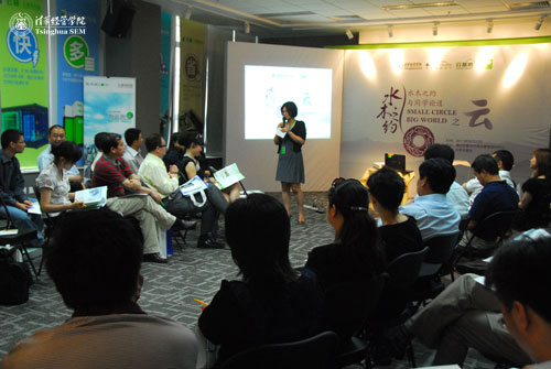 在云计算展厅里,大家看到了云科技的最新研究成果,包括云计算产品、软件、系统解决方案等。高科技的生产方式及其所带来的生活方式的变革引发了大家浓厚的兴趣。随后的云计算专题讨论由云基地执行董事、清华-哈佛高级经理人研修班第一期学员吴曼主持,云基地云箱科技CEO徐红忠、超云科技CEO韦轶群等专家就大家所关注的云计算发展前景及其在政府、电信、教育、医疗、金融、石油石化和电力等行业将产生的实际应用进行了分享。专家们特别指出,云计算的价值在于通过整合、共享和动态地提供资源来实现IT投资利用率最大化,从而使更多人分享人类知识,降低社会成本。当前,中国云计算产业正处于导入和准备阶段,处在大规模爆发的前夜。因此,在这种变革即将来临之际,清华经管学院希望通过搭建这个活动平台,让更多人关注信息技术和新型产业,为国家的经济成功转型贡献更多力量。随着计算机和互联网的普及应用,中国信息产业已步入发展的快车道。在各种领先技术辈出的当下,IT、电信、互联网和消费电子产业已趋于融合,而“云计算”作为领军技术正彰显其深远的影响力。
