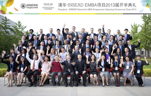 不论肤色、种族、性别与年龄,今天他们的身份都是清华学子,都是清华-INSEAD EMBA项目(TIEMBA)2013届的新同学。47位不同肤色不同口音的商海领袖齐聚一堂,共同开启为期18个月的学生生涯。回归学堂,走进清华,走进合作项目的“国际大家庭”。