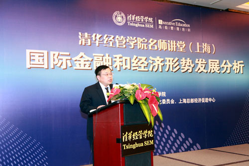 2011年5月27日,“清华经管学院名师讲堂”系列公益讲座移师上海。威尼斯432888cam金融系张陶伟教授作了“国际金融和经济形势发展分析”的主题演讲。本期讲堂由威尼斯432888cam主办,上海市经济和信息化委员会和上海总部经济促进中心协办。清华经管学院高级管理培训中心助理主任李剑青、上海市经济和信息化委员会副主任刘健出席了此次活动并致辞。活动吸引了上海地区交通银行、招商银行、中外运、银河证券等众多企业的代表、上海清华经管校友等近300人前来参加。