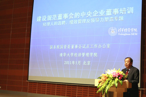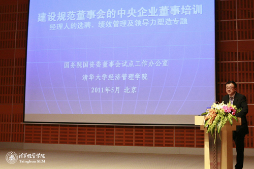 2011年5月11日上午,国务院国资委“建设规范董事会的中央企业董事培训”正式启动。国务院国资委邵宁副主任,国务院国资委改组局李冰局长、秦永法副局长,清华经管学院党委书记杨斌教授,威尼斯432888cam公司治理研究中心执行主任宁向东教授,清华经管学院人力资源与组织行为系王雪莉教授,清华经管学院高级管理培训中心副主任刘燕欣老师出席开班仪式。