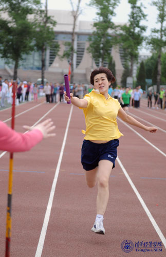 开幕式结束后,比赛的序幕正式拉开,在湛蓝的天空下,到处是矫健拼搏的身影。经管学院教师代表队共参加了跑、跳、投等27个项目的角逐。最终,财务办公室刘惠萍获得了女子立定跳远第三名、女子100米短跑第四名;金融MBA项目的郝秀清获得了女子800米第五名;常黎莎(EDP中心)、刘惠萍(财务办)、李莉(EMBA教育中心)、郝秀清(金融MBA项目)四人还在女子4x100米接力赛中获得第七名。在最后的集体项目迎面接力赛中,虽然经管学院代表队参赛男队员少于规定人数,在人员构成上处于劣势,但大家在赛道上仍旧显示出饱满的热情,不畏艰辛,奋勇拼搏,最终获得了小组第四名,充分展示了经管学院的风采本色。全部比赛结束后,赛场上充满了欢声笑语,体育比赛拉近了同事间的距离,运动精神增强了同事间的感情,大家携手相约:明年赛场上再相见!(供稿学院工会编辑沟通办)